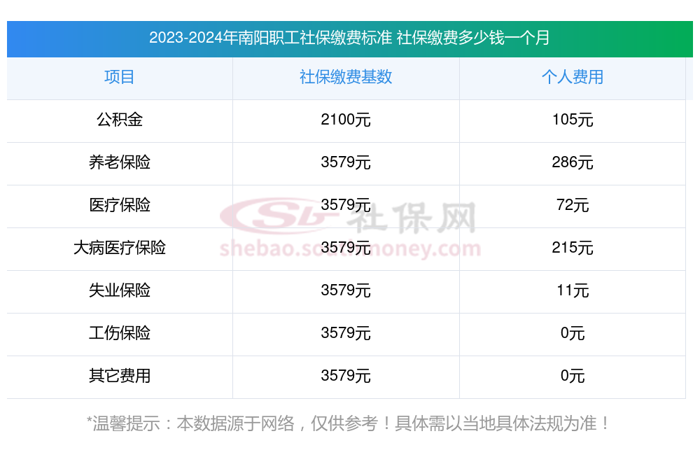 南阳社保缴纳情况是怎样的?一起和社保网app一起来看看下面的明细表: