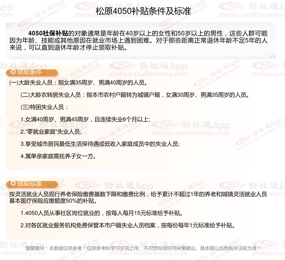 2025松原4050补贴主要针对的是年龄在40岁以上的女性和50岁以上的男性,这些人群通常因为年龄较大而面临就业困难。
