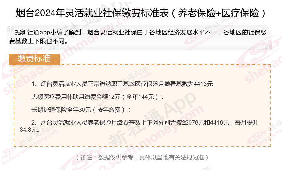三、烟台2024年灵活就业社保缴费基数及比例最新消息