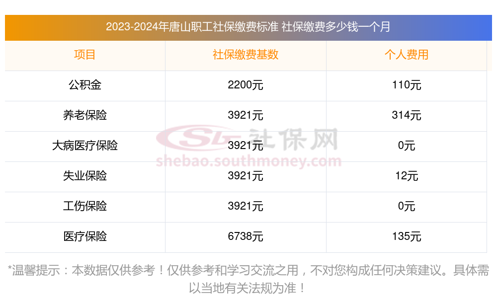唐山社保缴纳情况是怎样的?一起和新社通APP一起来看看下面的明细表: