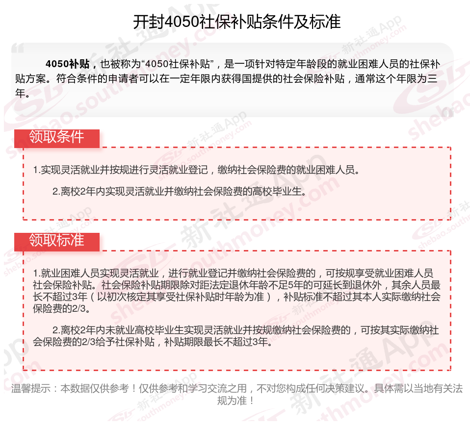二、2023-2024年开封4050社保补贴标准,最新领取条件来了