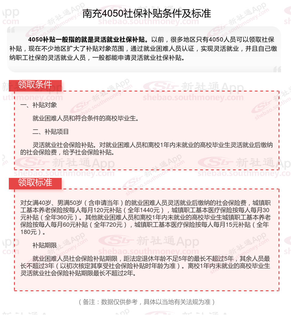 二、南充4050社保补贴标准及条件2023-2024年,最新如下