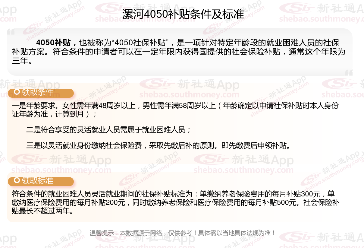 以上就是漯河4050灵活就业社保补贴的相关内容,欢迎关注新社通/下载新社通APP了解更多五险一金专业资讯。