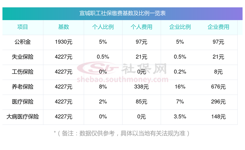宣城社保缴纳比例公司和个人按照以下方式计算?:
