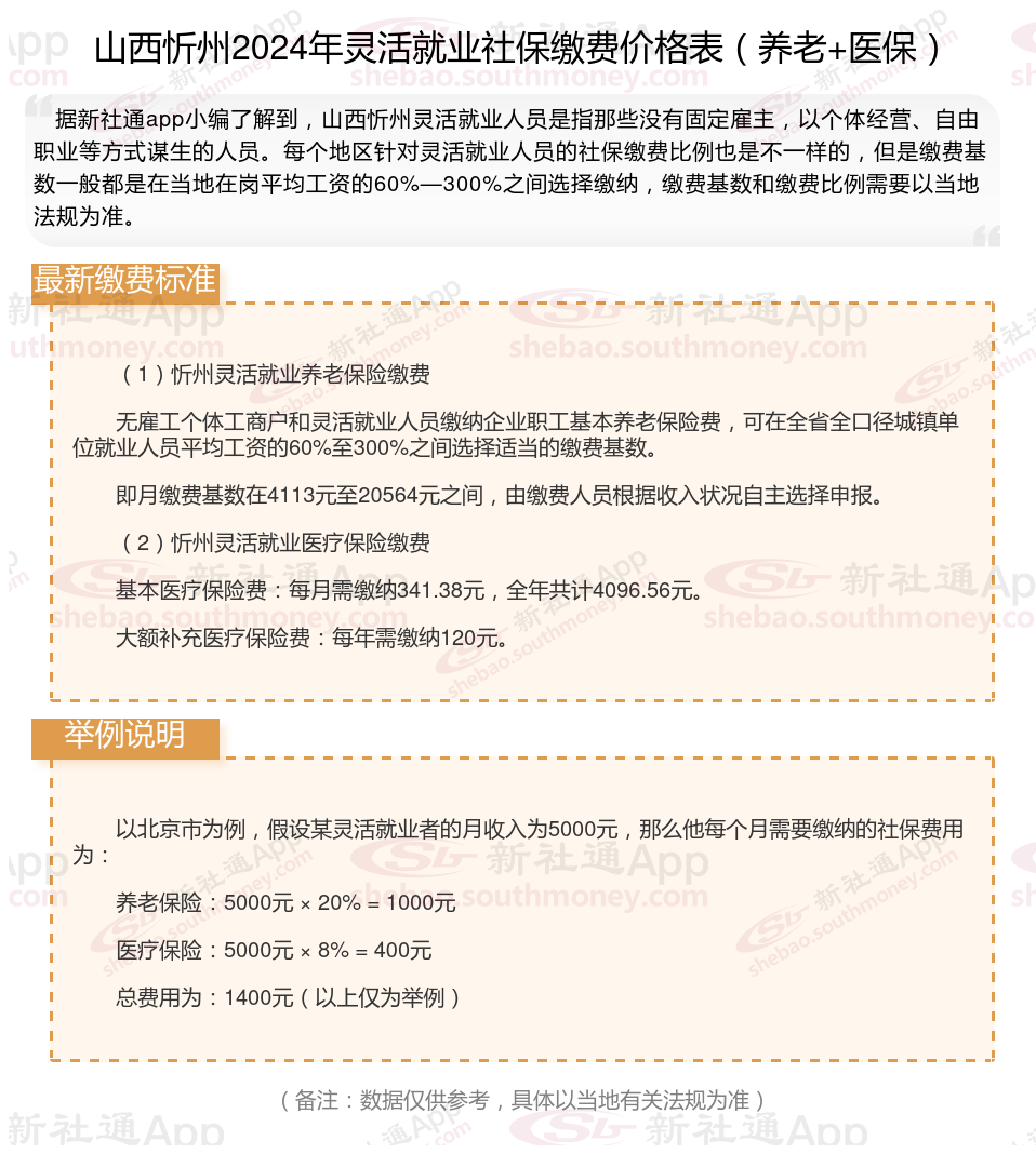 三、山西忻州2024年灵活就业社保缴费基数及比例最新消息