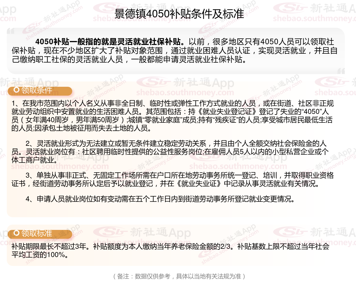 一、景德镇4050社保补贴标准及条件2023-2024年
