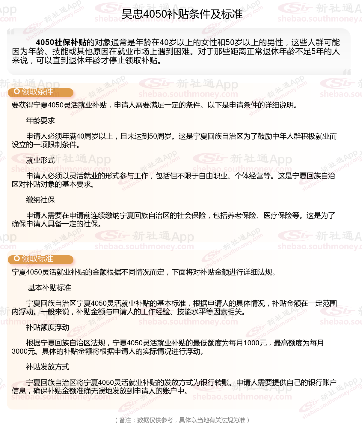 一、2023-2024年吴忠4050社保补贴标准及条件