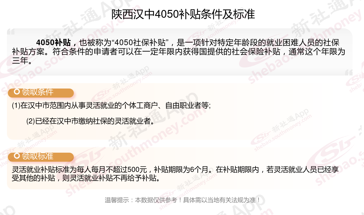 以上就是陕西汉中4050灵活就业困难人员社保补贴的相关内容,欢迎关注新社通/下载新社通APP了解更多五险一金专业资讯。