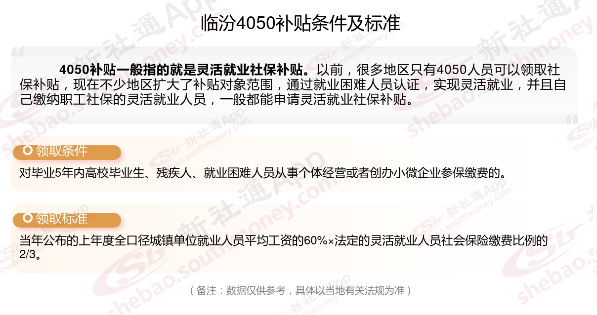 以上就是临汾4050灵活就业社保补贴的相关内容,欢迎关注新社通/下载新社通APP了解更多五险一金专业资讯。