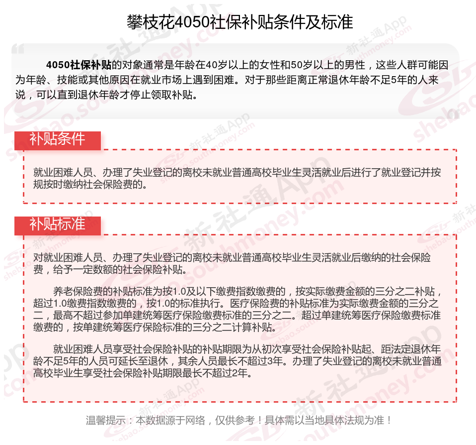 一、2023-2024年攀枝花灵活就业4050社保补贴标准和条件是什么