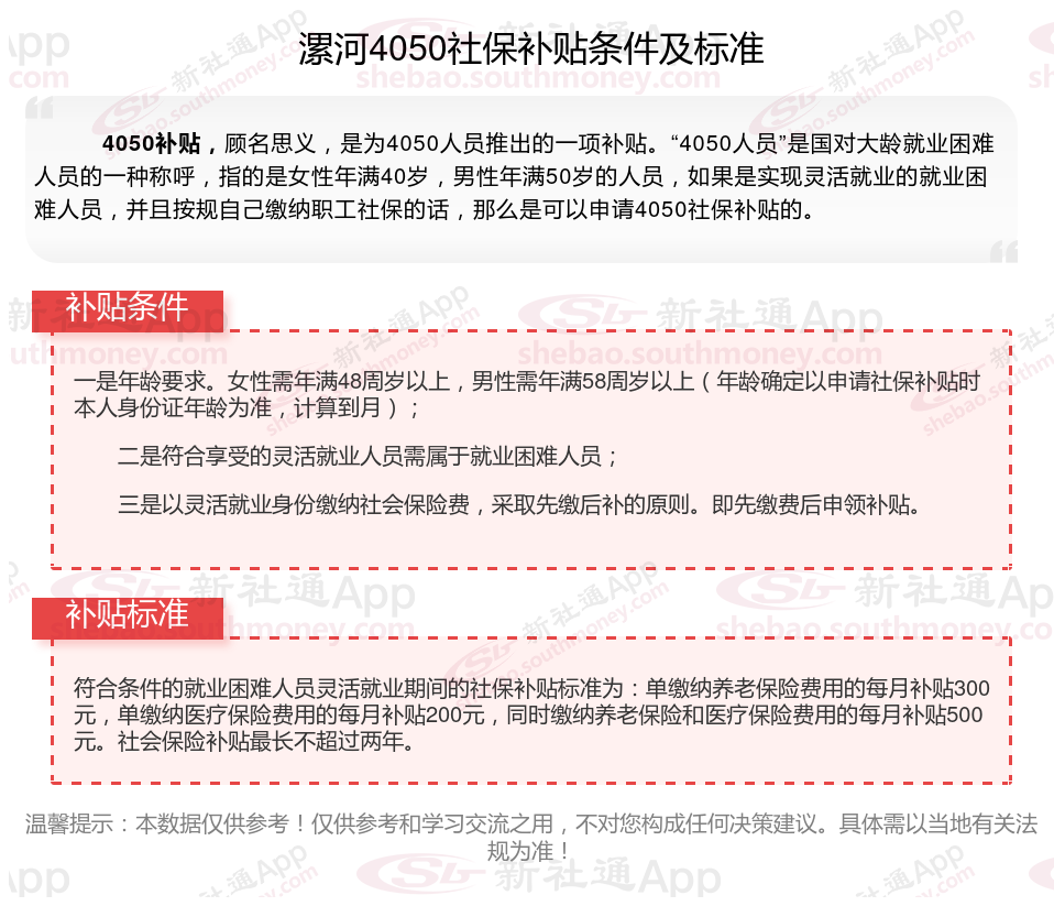 以上就是漯河4050灵活就业社保补贴的相关内容,欢迎关注新社通/下载新社通APP了解更多五险一金专业资讯。