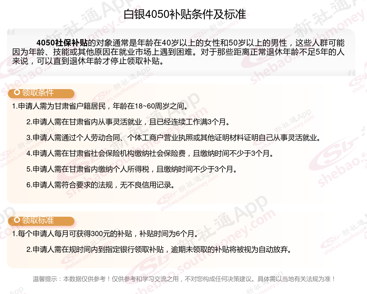 一、白银4050社保补贴标准及条件2023-2024年