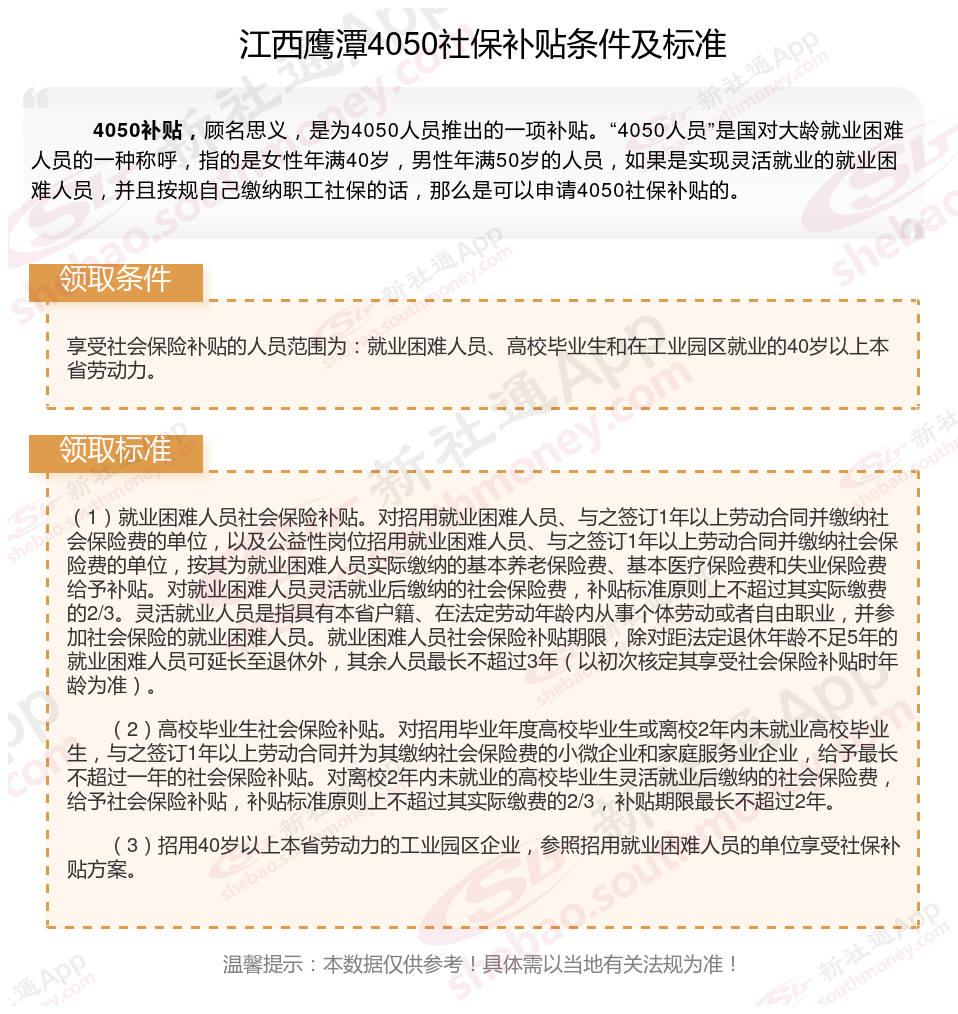 一、2023-2024年江西鹰潭4050社保补贴标准,最新领取条件来了