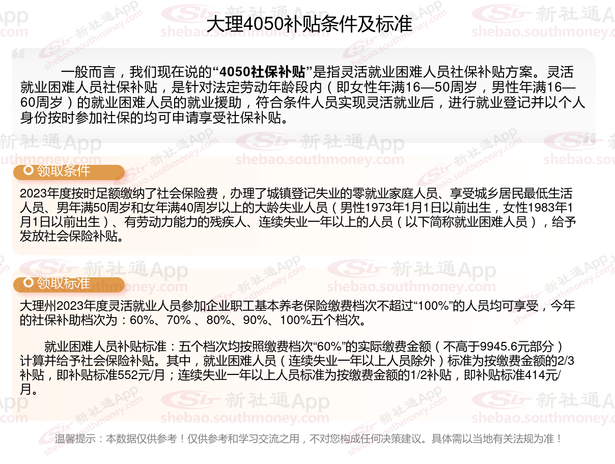 2025大理灵活就业4050社保补贴是一项面向特定年龄段的就业困难人群的社会保险补贴。