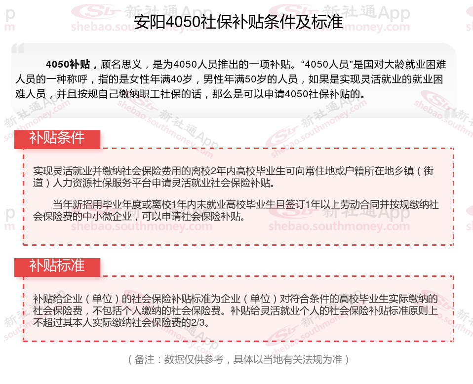 二、安阳4050社保补贴标准及条件2023-2024年,最新如下
