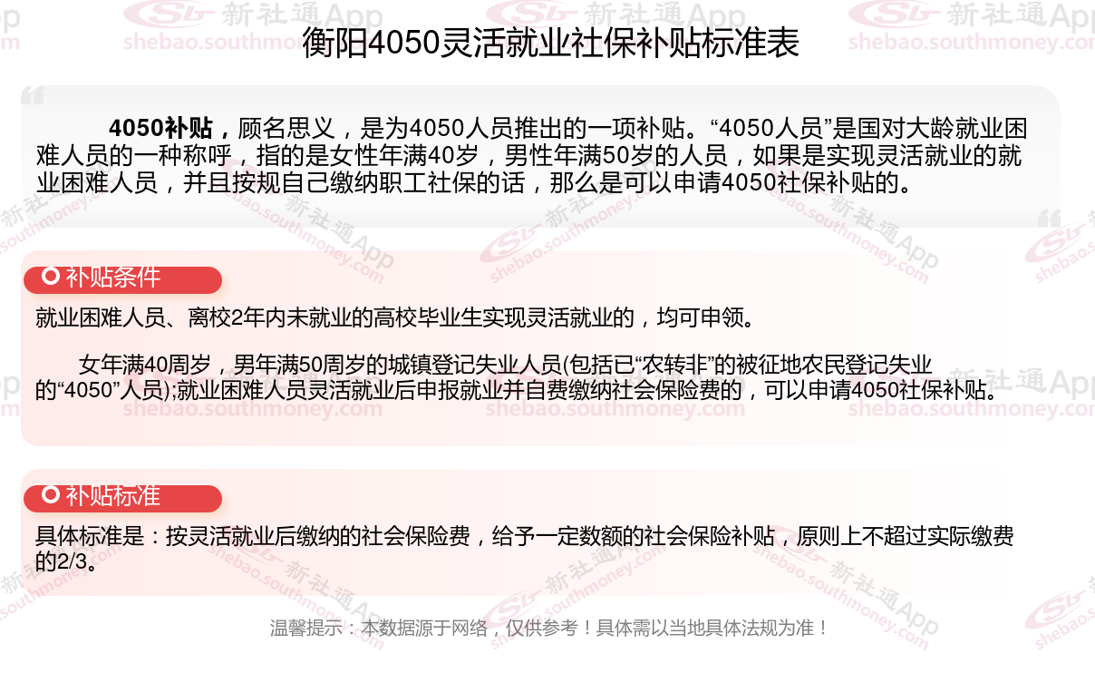 以上就是衡阳4050灵活就业社保补贴的相关内容,欢迎关注新社通/下载新社通APP了解更多五险一金专业资讯。