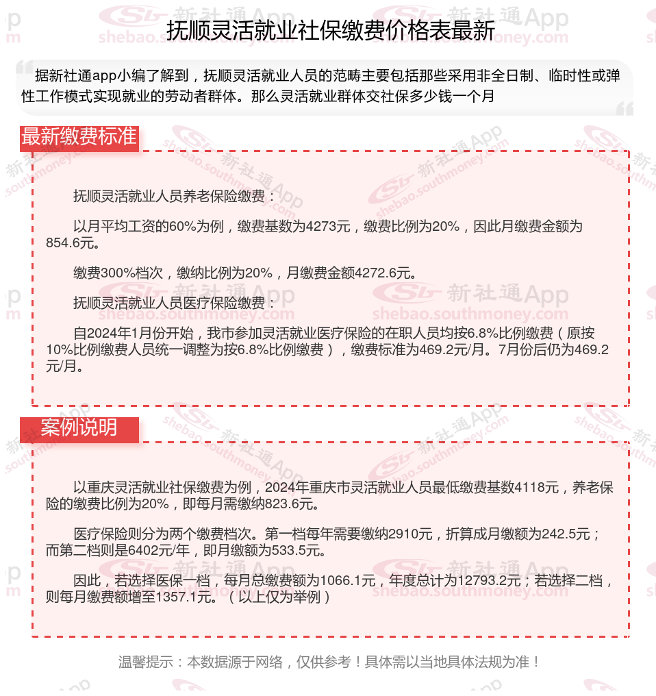 抚顺社保缴费多少钱?下表是2024-2025年抚顺社保费用明细参考,根据新社通app-社保缴费查询工具提供的最新数据如下: