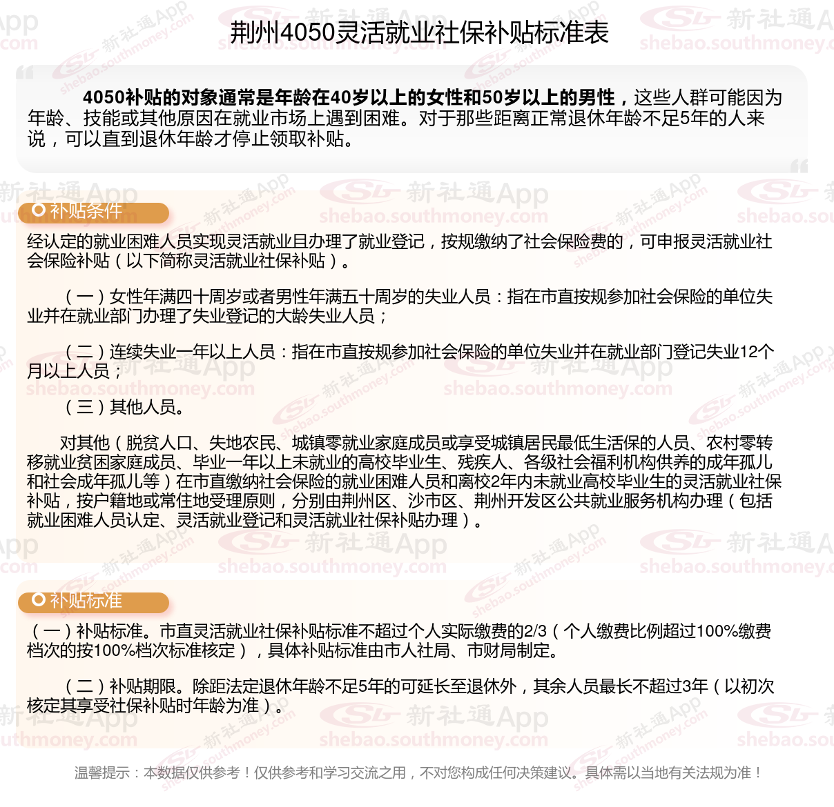 以上就是荆州4050灵活就业社保补贴的相关内容,欢迎关注新社通/下载新社通APP了解更多五险一金专业资讯。
