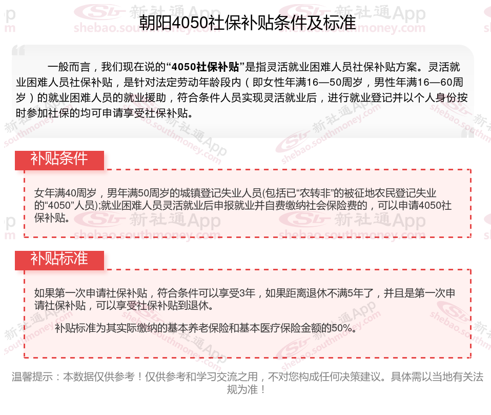 一、朝阳4050社保补贴标准及条件2023-2024年