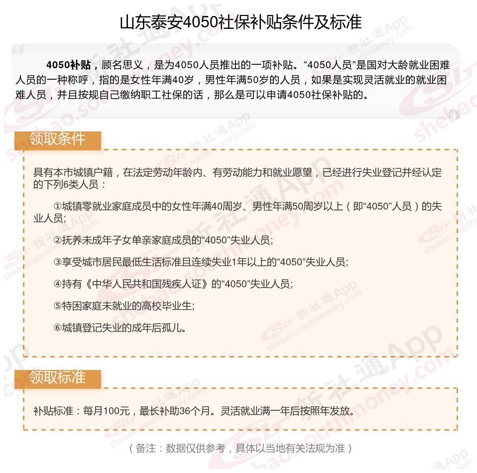 一、山东泰安4050社保补贴标准及条件2023-2024年