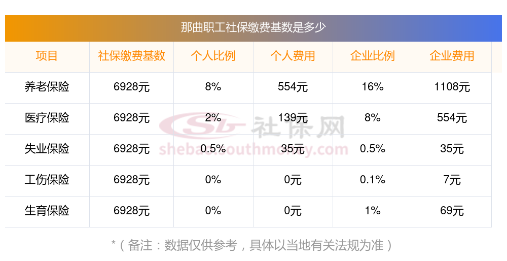 2025年那曲社保缴费多少钱?下表是2023-2024年那曲社保费用明细参考,如下: