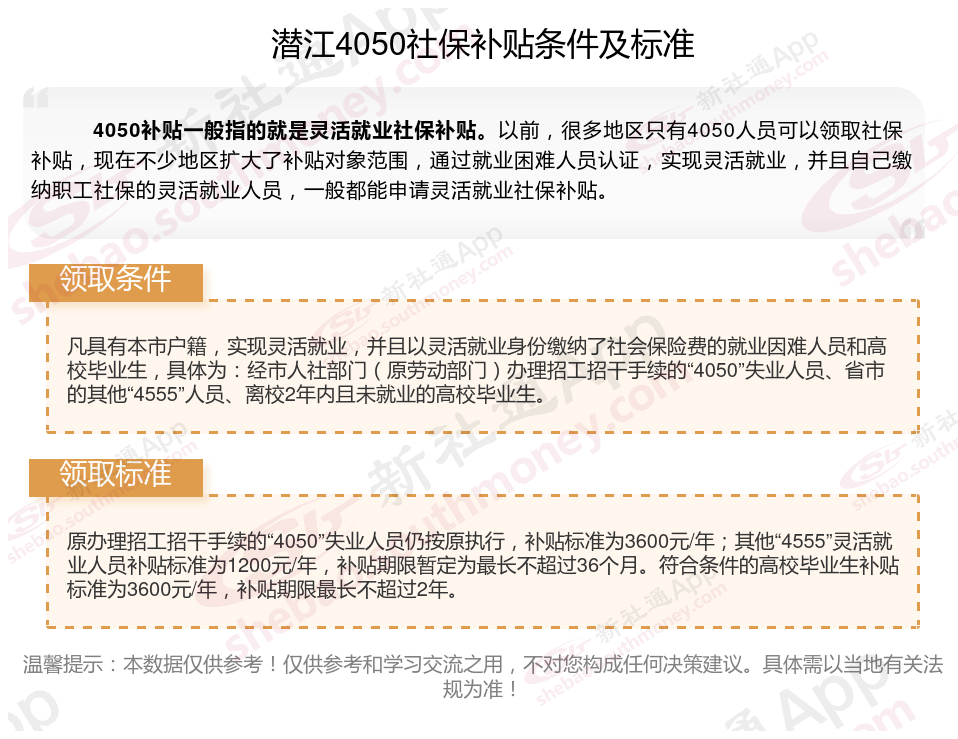 2025潜江灵活就业4050社保补贴是一项面向特定年龄段的就业困难人群的社会保险补贴。