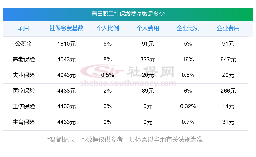 2025年莆田社保缴费多少钱?下表是2023-2024年莆田社保费用明细参考,如下: