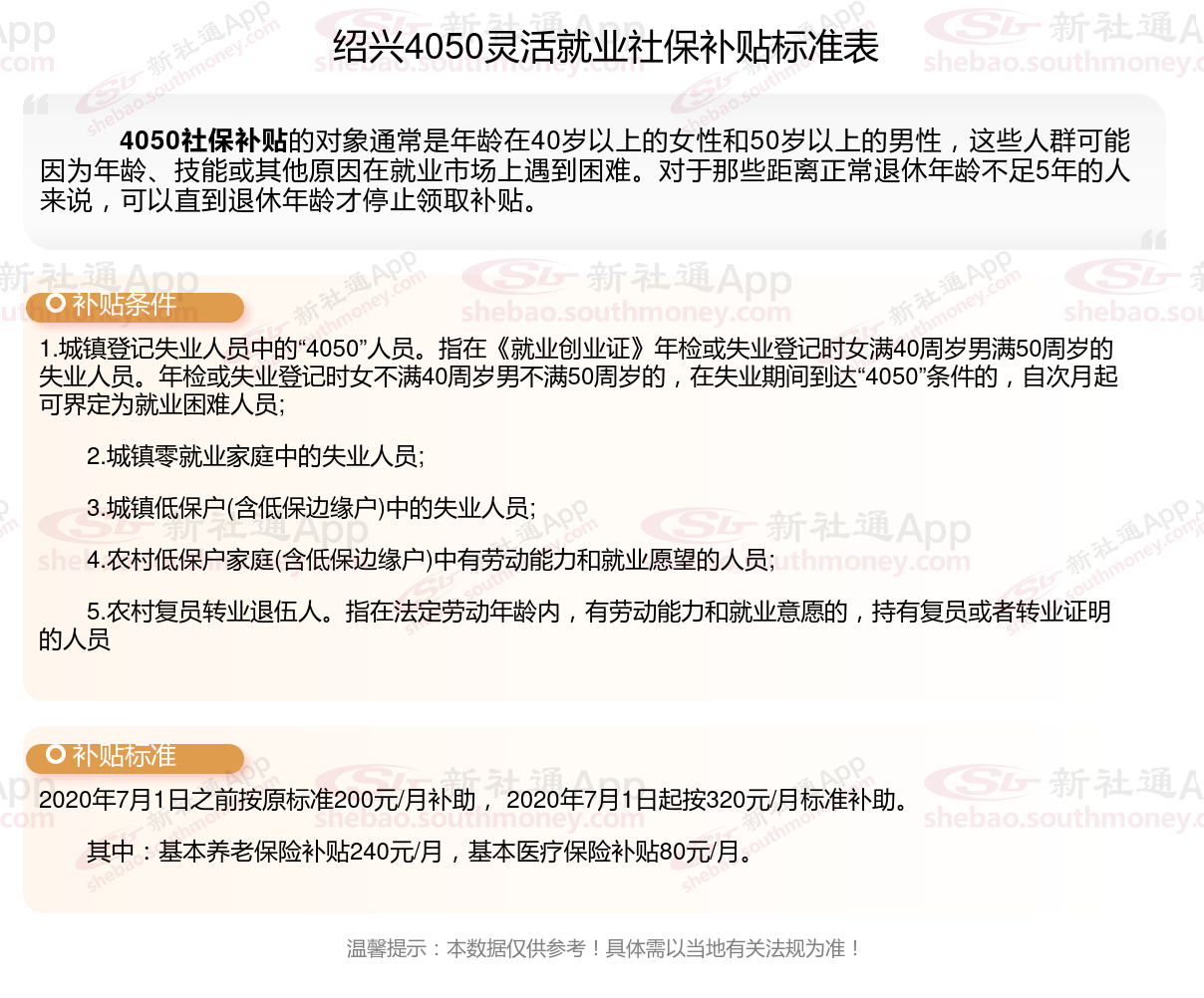 2025绍兴灵活就业4050社保补贴是一项面向特定年龄段的就业困难人群的社会保险补贴。