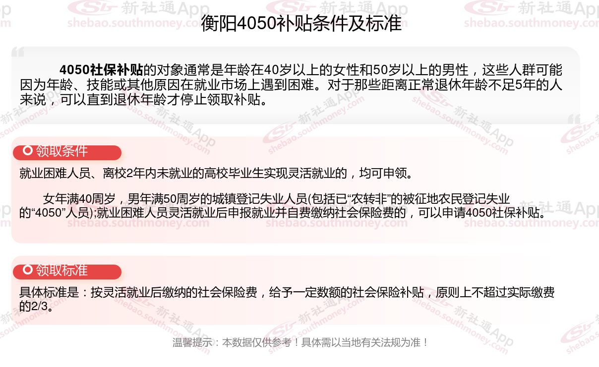 一、衡阳4050社保补贴标准及条件2023-2024年