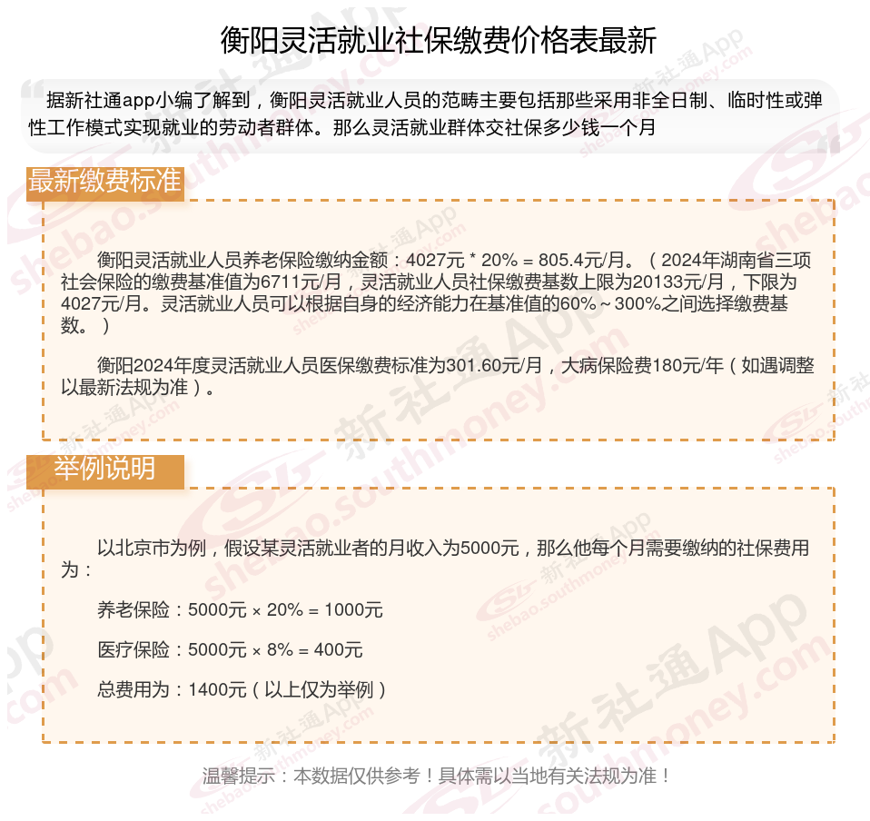 据新社通app数据显示,衡阳企业灵活就业养老保险的缴费基数为:4027元。