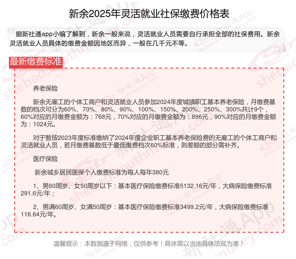 那么,灵活就业者社保是多少钱一个月多少钱?根据新社通app-社保缴费查询工具提供的2025社保缴费标准详情数据: