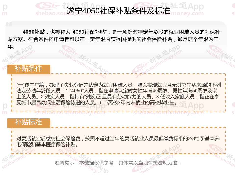 二、2023-2024年遂宁4050社保补贴标准及条件
