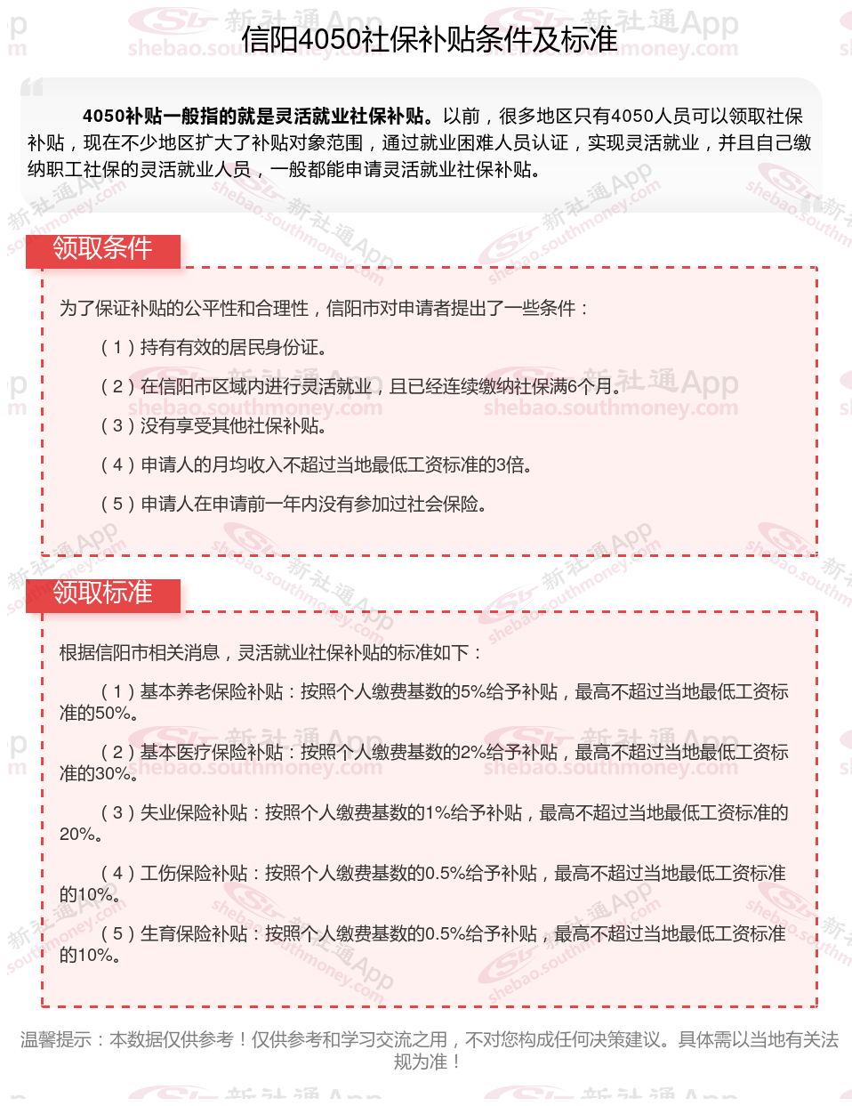 2025信阳灵活就业4050社保补贴是一项面向特定年龄段的就业困难人群的社会保险补贴。
