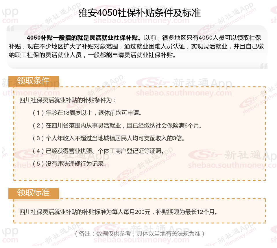 一、2023-2024年雅安4050社保补贴标准,最新领取条件来了