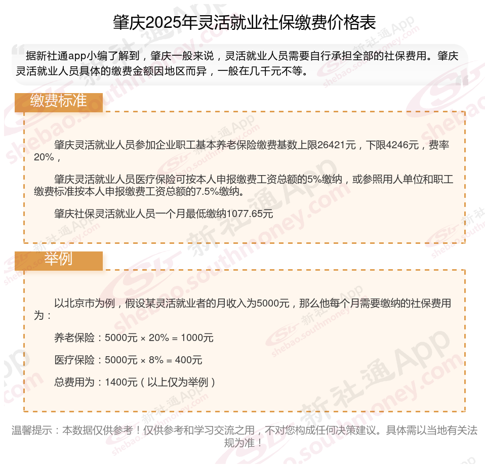 据新社通app数据显示,肇庆灵活就业人员养老缴费基数2024-2025年最新标准如下: