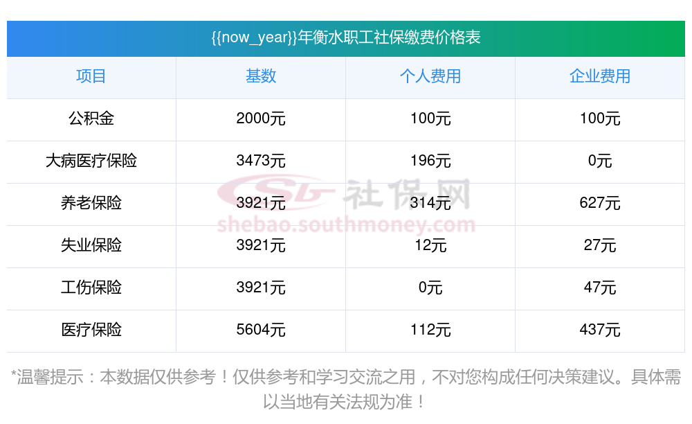 衡水社保缴纳情况是怎样的?一起和新社通一起来看看下面的明细表: