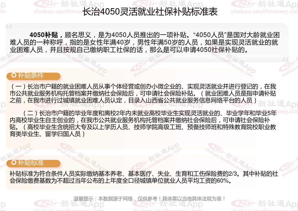以上就是长治4050灵活就业困难人员社保补贴的相关内容,欢迎关注新社通/下载新社通APP了解更多五险一金专业资讯。