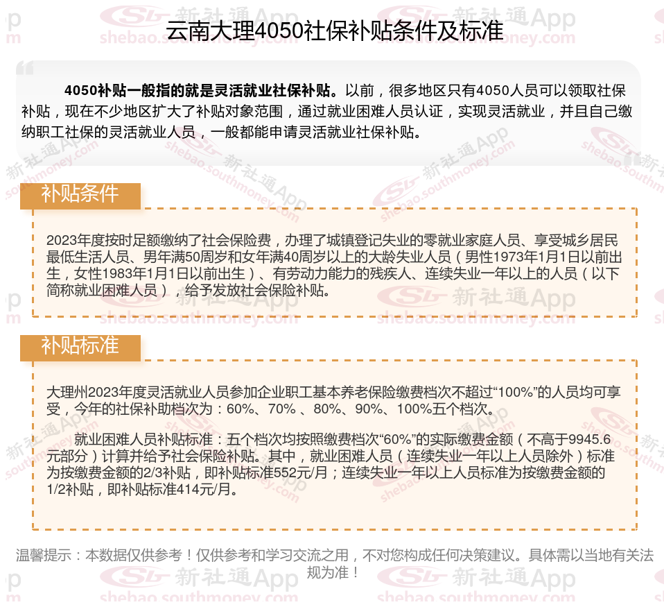 以上就是云南大理4050灵活就业社保补贴的相关内容,欢迎关注新社通/下载新社通APP了解更多五险一金专业资讯。