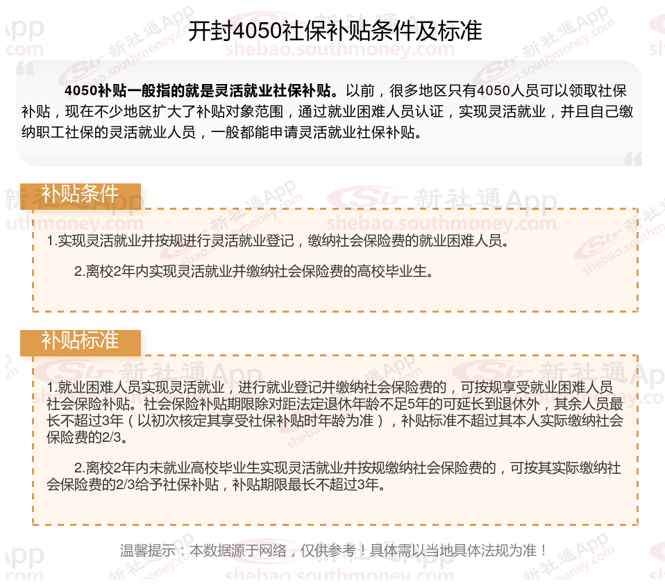 二、开封4050社保补贴标准及条件4050社保补贴,最新如下