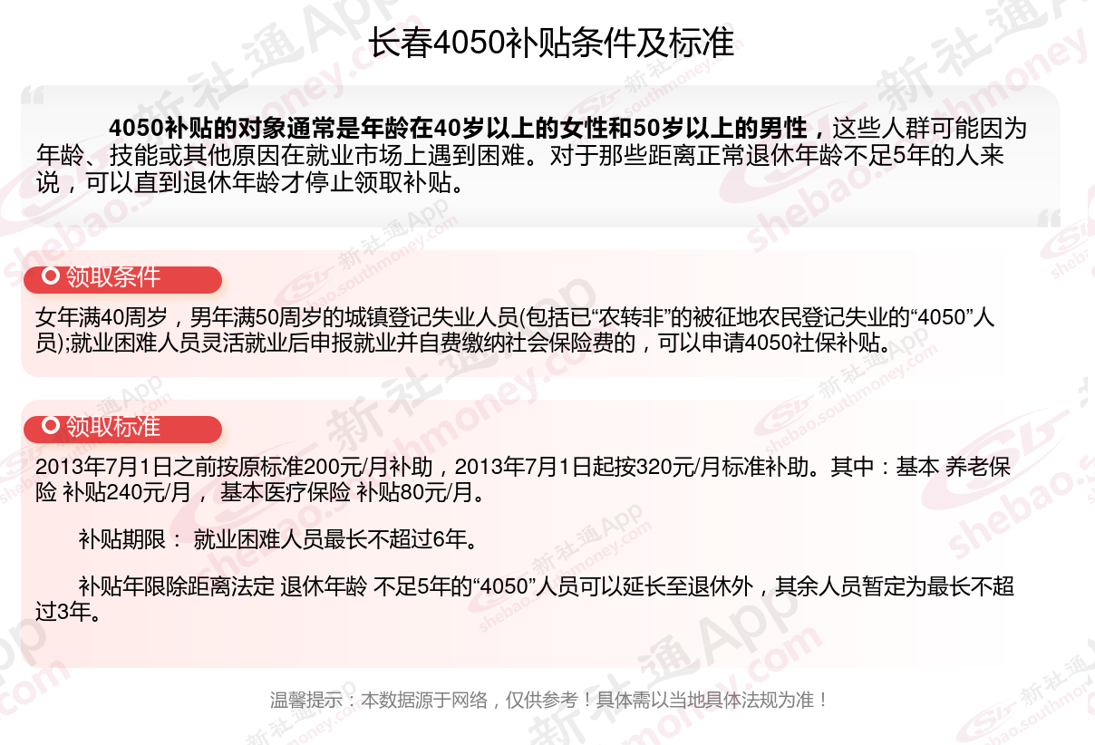 今天聊一下4050补贴话题。4050补贴听起来像是一个针对特定年龄人群的社保补贴。比如女性需年满40周岁,男性需年满50周岁(以申请当年12月31日为截止日期)。那么长春4050灵活就业社保补贴标准是多少钱?长春4050社保补贴条件是什么?接下来随新社通APP小编了解一下最新资讯。