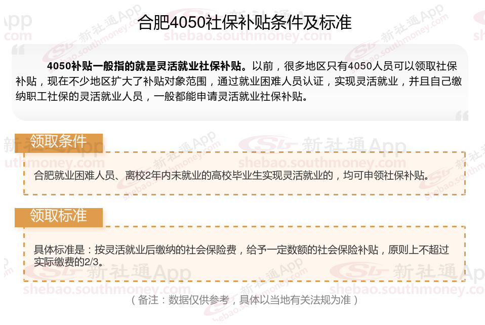 2025合肥灵活就业4050社保补贴是一项面向特定年龄段的就业困难人群的社会保险补贴。