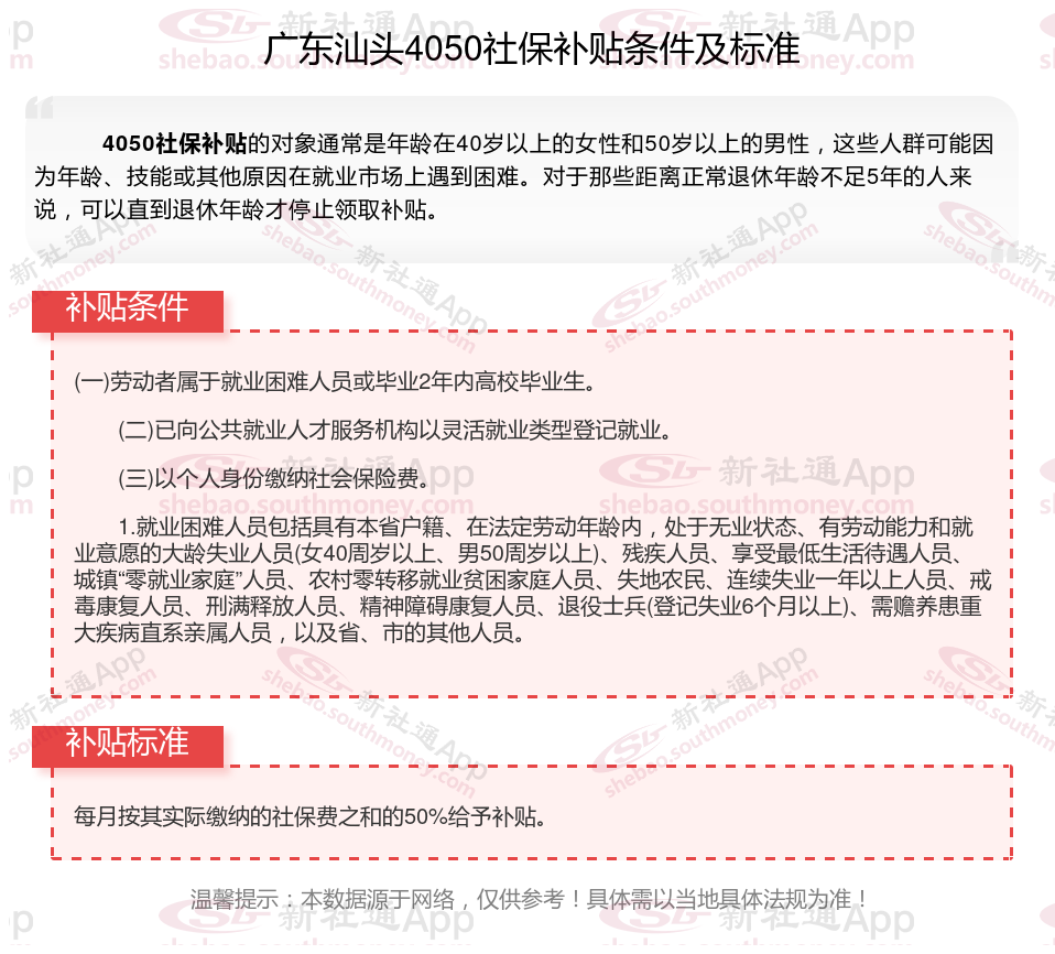 以上就是广东汕头4050灵活就业社保补贴的相关内容,欢迎关注新社通/下载新社通APP了解更多五险一金专业资讯。