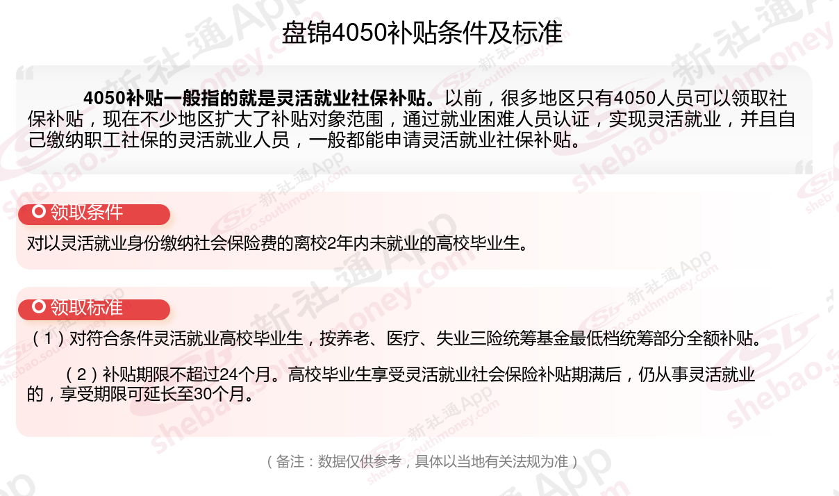 以上就是盘锦4050灵活就业社保补贴的相关内容,欢迎关注新社通/下载新社通APP了解更多五险一金专业资讯。