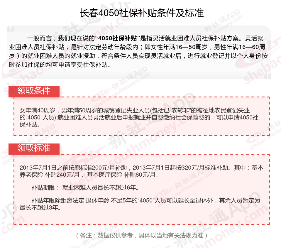 二、2023-2024年长春4050社保补贴标准,最新领取条件来了