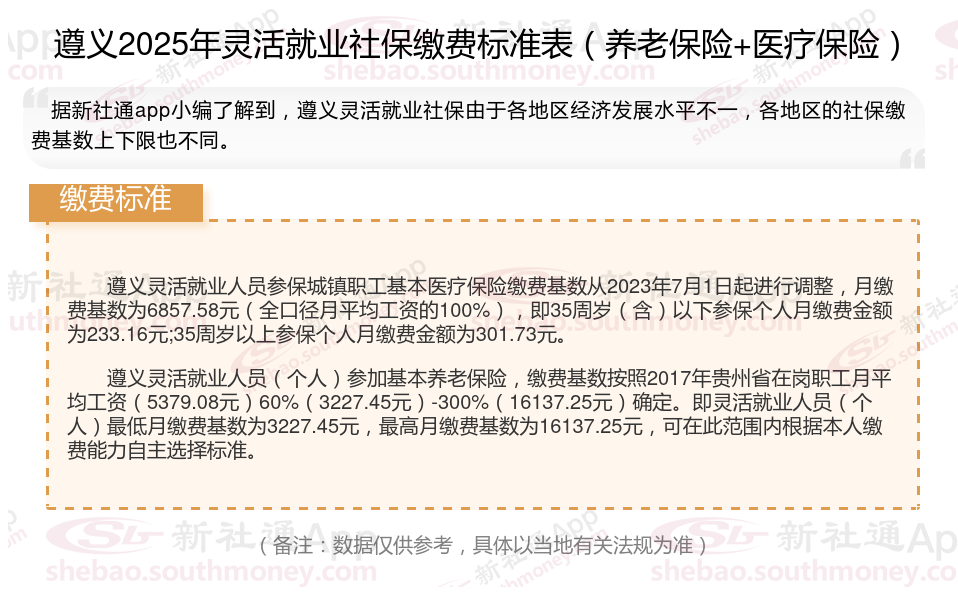 以上就是遵义灵活就业社保缴费的全部内容,数据及内容供参考!希望对你有帮助,欢迎关注新社通解锁更多社保专业资讯。