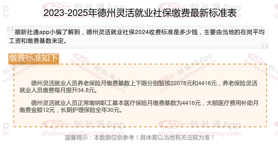 德州灵活就业人员基本养老保险缴费基数暂按不低于4416元;