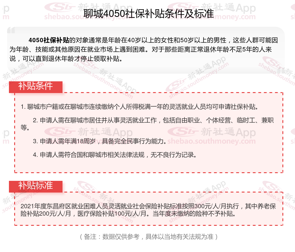二、2025年聊城4050社保补贴标准及条件
