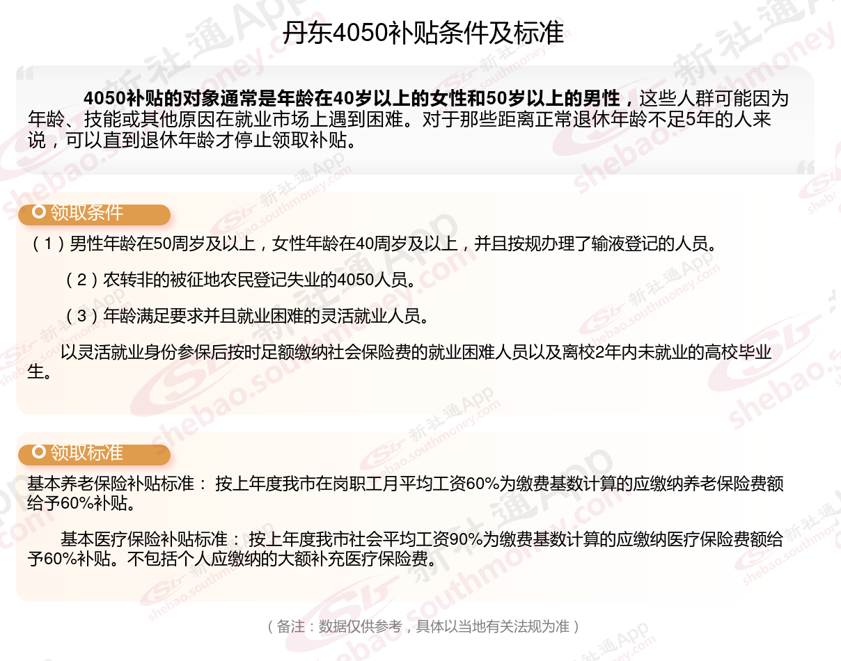 2025丹东4050补贴主要针对的是年龄在40岁以上的女性和50岁以上的男性,这些人群通常因为年龄较大而面临就业困难。