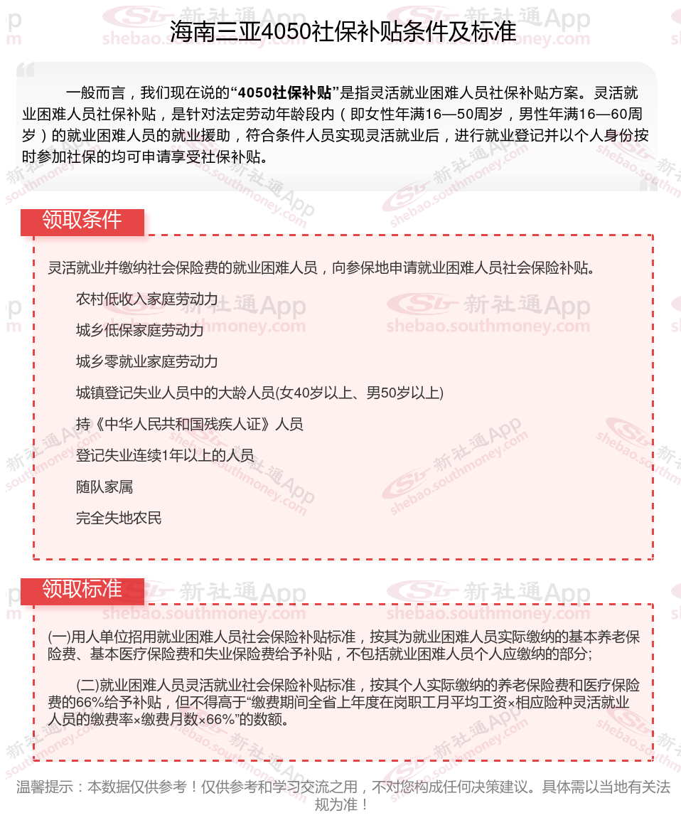 2025海南三亚灵活就业4050社保补贴是一项面向特定年龄段的就业困难人群的社会保险补贴。