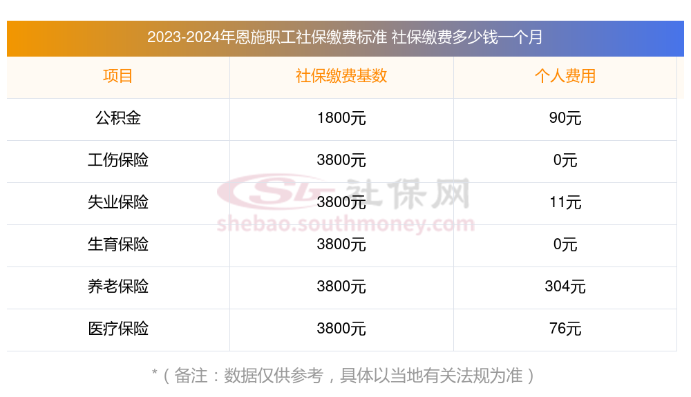 恩施社保一个月交多少钱,个人缴纳多少钱一个月?下面和新社小编一起来看看恩施最低标准社保费用明细参考,新社通app-社保缴费查询工具提供的最新数据如下: